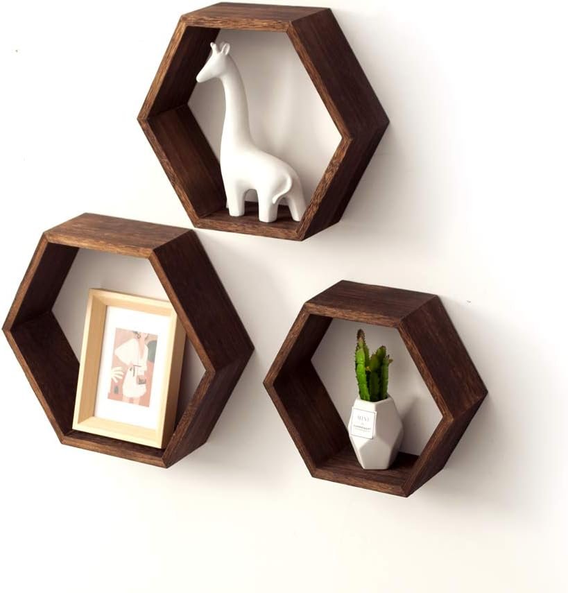 Enhance your home décor with the AZL1 Life Concept Hexagonal Floating Wall Shelves, a stylish set of three geometric shelves designed to combine modern aesthetics with practical storage. Made from high-quality wood with a rustic finish, these shelves are perfect for displaying plants, photos, or collectibles while saving floor space. Easy to install with included hardware, they offer a versatile and elegant solution for any room—add a touch of charm to your walls today.