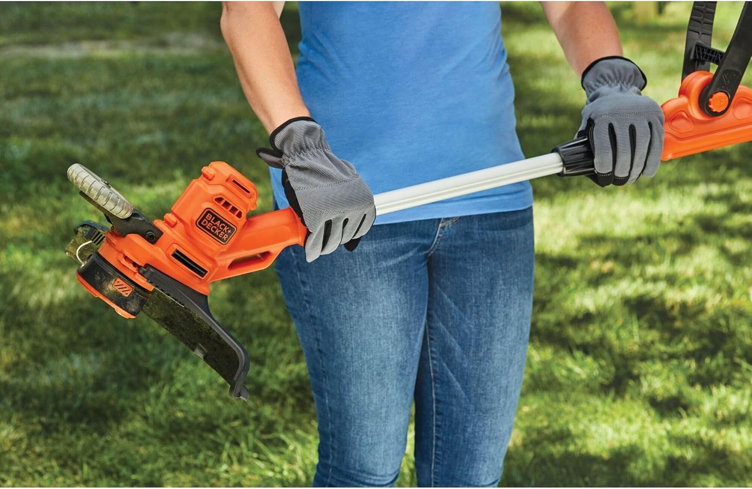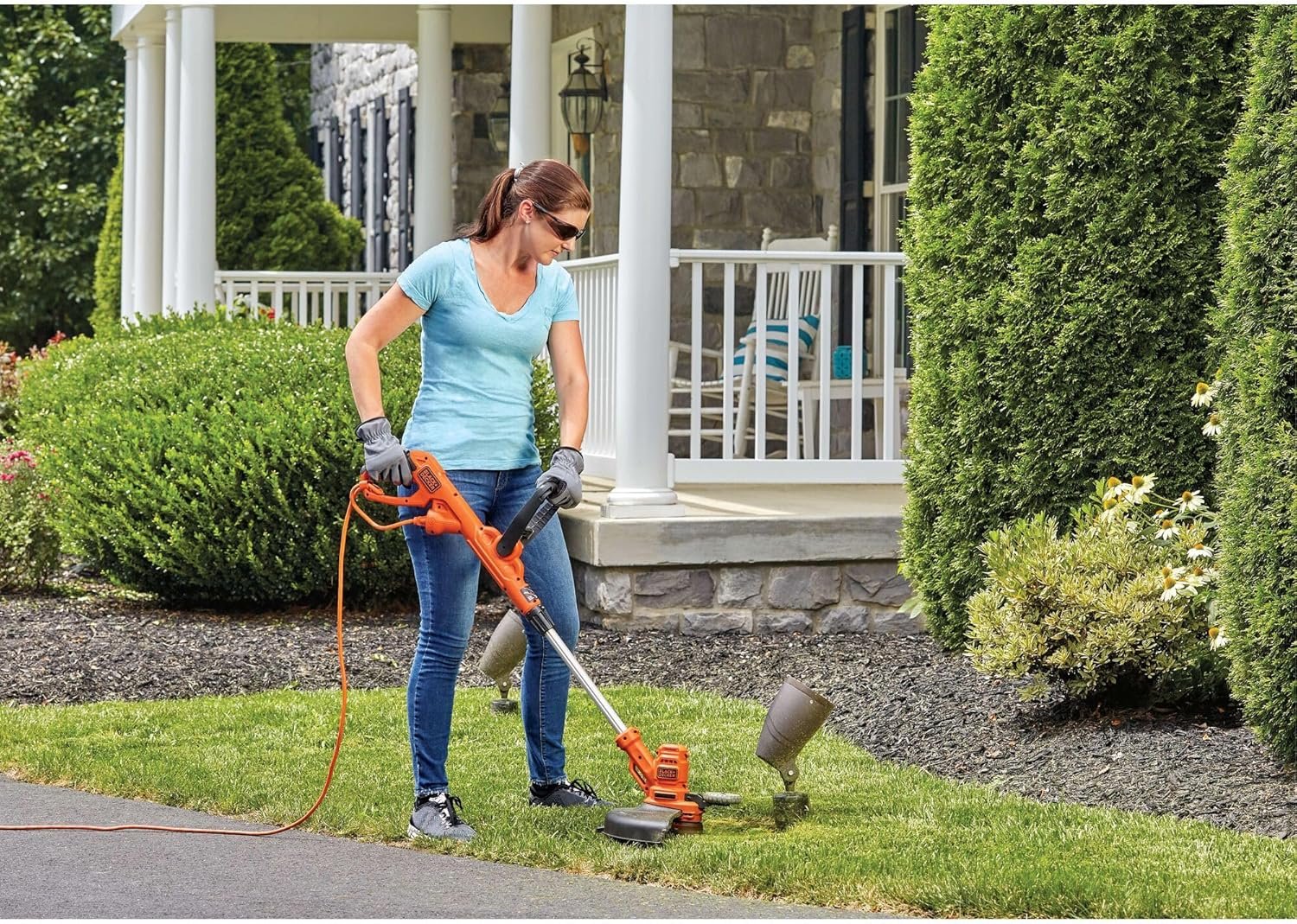 Maintain a perfectly manicured lawn with the BLACK+DECKER BESTA510 14″ 6.5 Amp Electric String Trimmer & Edger. This versatile tool combines powerful trimming and precise edging in one lightweight, easy-to-use design. Its 6.5-amp motor effortlessly cuts through dense grass and weeds, while the 14-inch cutting swath lets you cover more ground quickly. The Automatic Feed Spool (AFS®) ensures continuous cutting without interruptions, and the adjustable handle provides comfort and control. Ideal for residential lawn care, this 2-in-1 trimmer and edger delivers efficient performance for every yard.